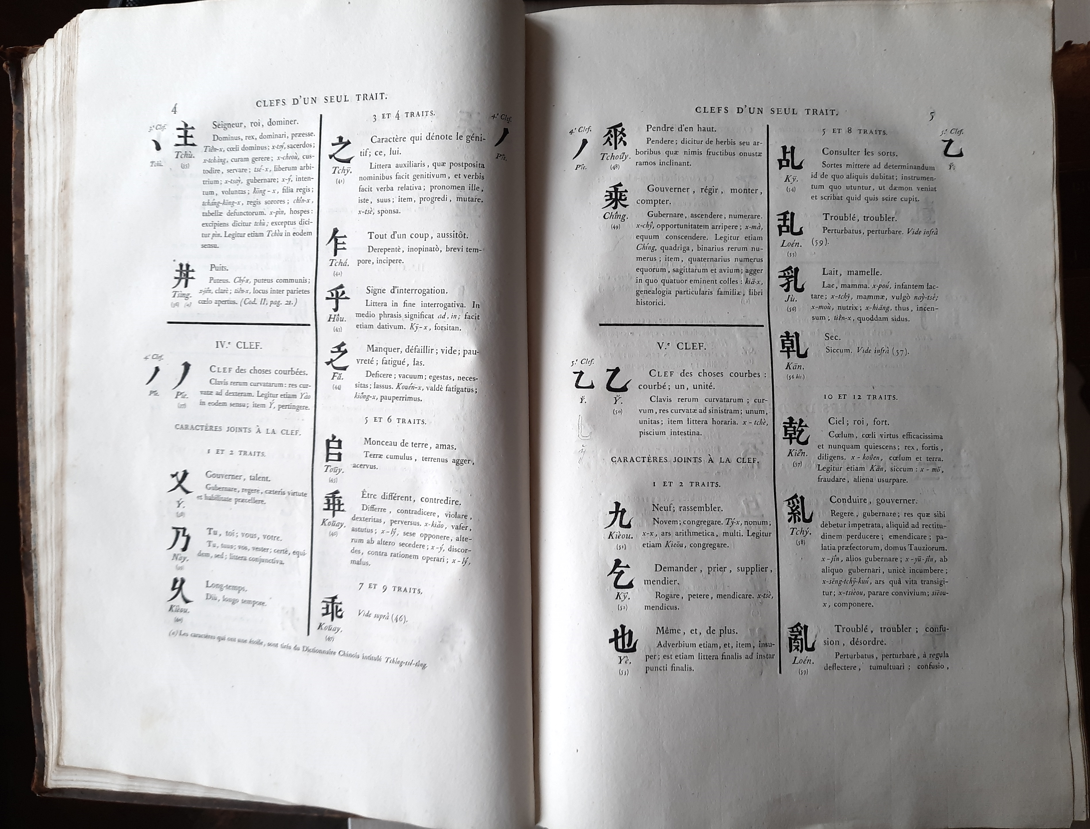 Словарь Dictionnaire chinois, français et latin… (Paris, 1813) де Гиня становится наиболее полным в своем роде изданием из существовавших до этого момента времени в Европе, и, кроме того, он является шедевром типографики. Его украшает гравированный фронтиспис с изображением императора Наполеона I. Издание включает введение, таблицу китайского правописания и произношения слов. За предисловием следует знаменитая таблица из 214 ключей, сопровождаемая необходимой методологией, заимствованной у Базилио де Глемоны.