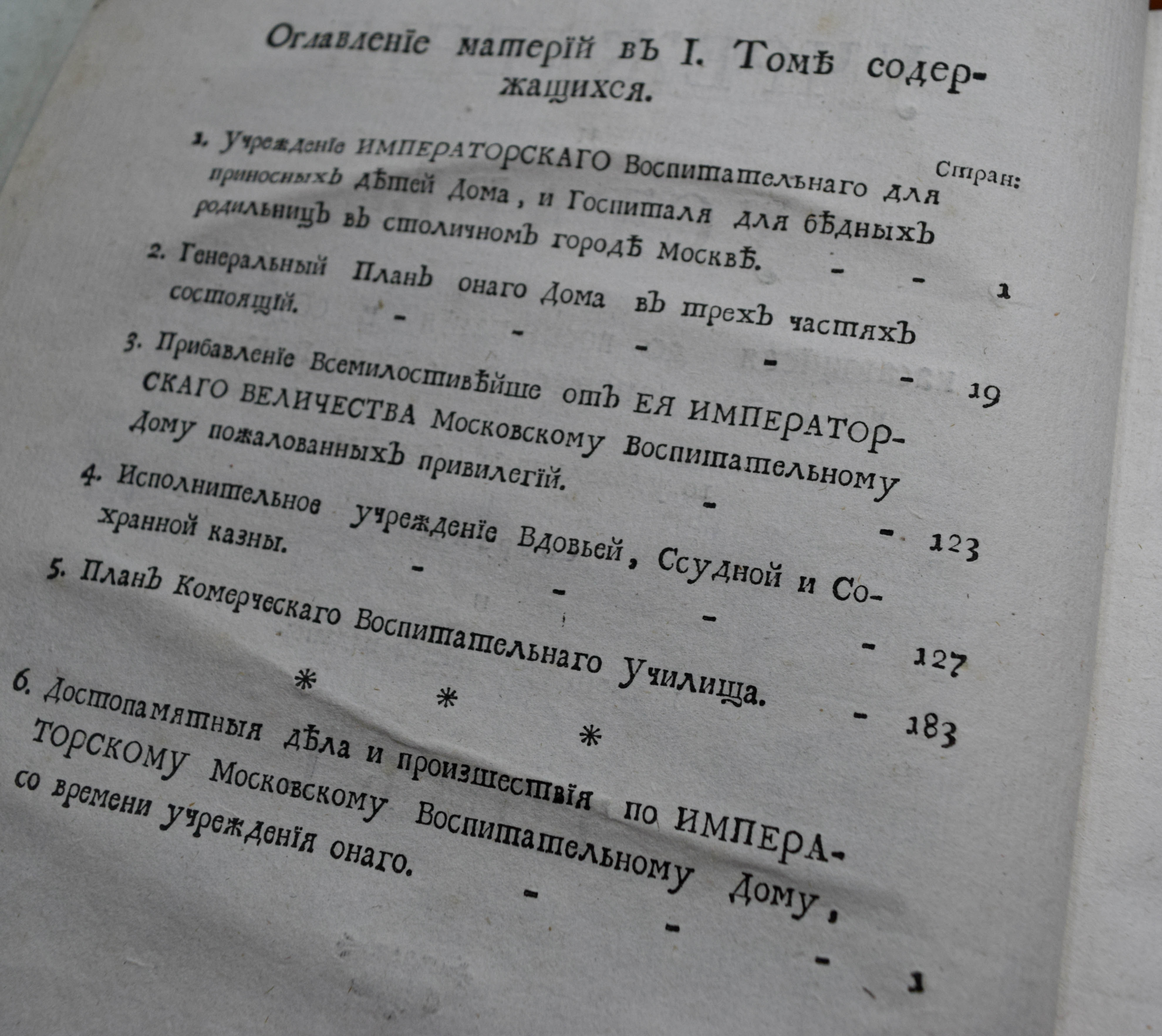 Особое внимание автор уделяет описанию основанного в 1764 году Воспитательного дома в Москве для приносных, т.е. оставленных младенцев. Обычно это были незаконнорожденные дети. И.И. Бецкой тоже был внебрачным сыном генерал-фельдмаршала Ивана Юрьевича Трубецкого и шведской баронессы. От отца Бецкой получил сокращенный вариант фамилии, как это было принято у знати.