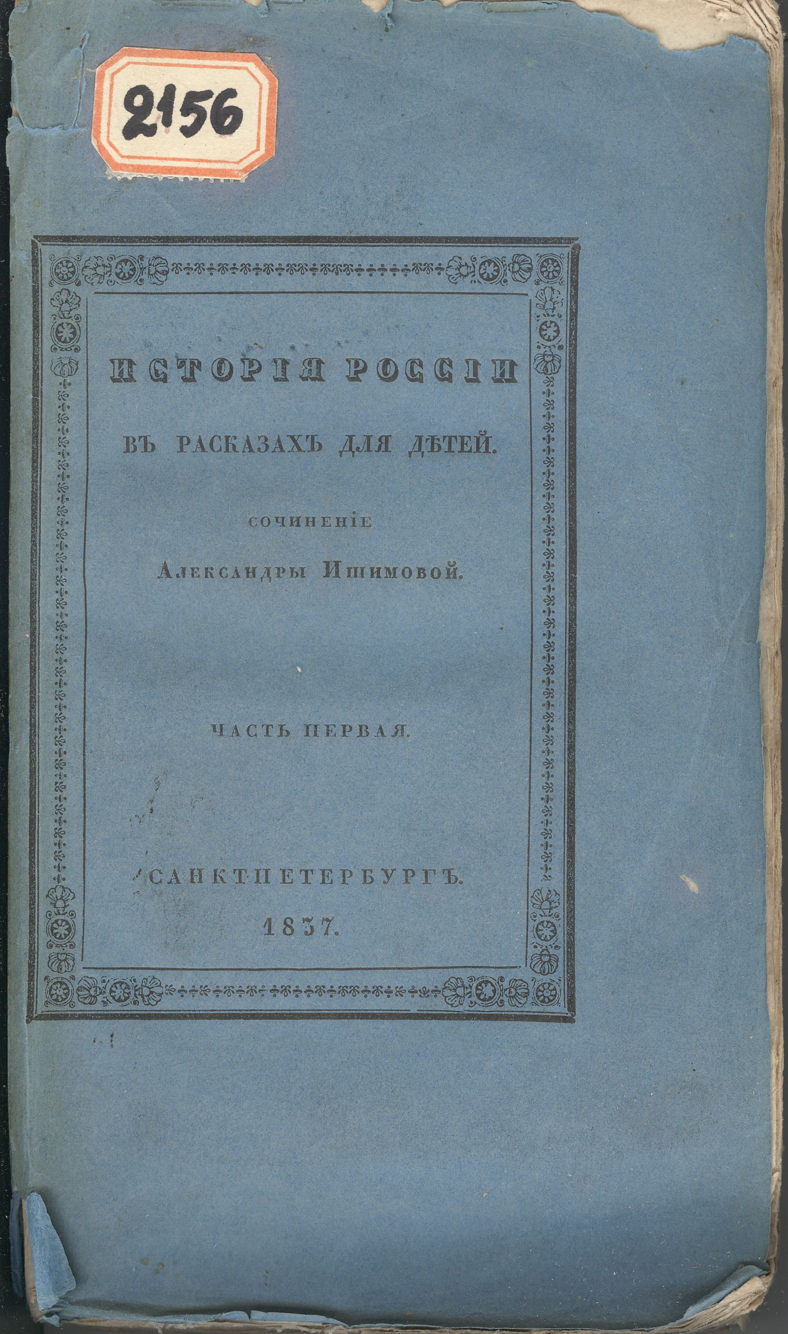 Появление книги «История России в рассказах для детей» стало важнейшим достижением литературы для детей и юношества в России первой половины XIX столетия. Автор издания – детская писательница, переводчик и издатель Александра Осиповна Ишимова (1804–1881). В течение пяти лет (с 1837 по 1841 годы) она работала над созданием «Истории России в повестях детям» («История России в рассказах для детей»). За фактологическую основу книги была взята «История государства Российского» Н. М. Карамзина. Ишимова передала первые двадцать пять рассказов поэту и критику П. А. Плетневу, который преподавал историю литературы наследнику престола (будущему императору Александру Второму) и великим княжнам. Плетнев использовал эти рассказы на своих уроках. В результате автору сочинения было определено денежное пособие для продолжения труда.
