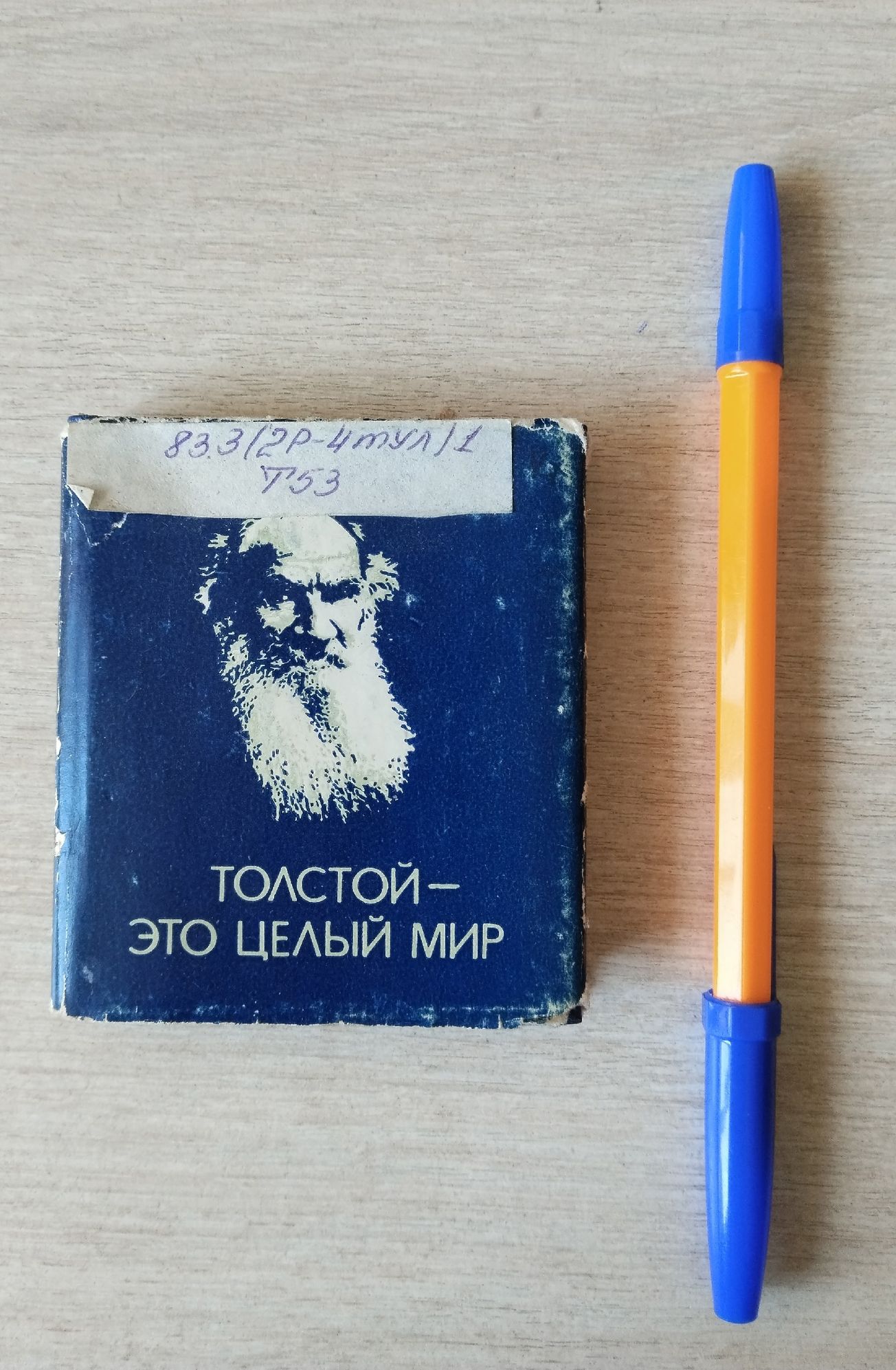 Коллекция миниатюрных книжных изданий Тульской областной научной библиотеки насчитывает более 500 экземпляров, выпущенных, как правило в ведущих советских и российских издательствах. Но есть среди них ряд изданий, вышедших в свет в Туле. Среди них весьма интересна небольшая книжечка «Толстой – это целый мир», вышедшая в Туле в Приокском книжном издательстве в 1981 г. Формат издания – 70 х 80 мм, книга снабжена иллюстрациями, имеет суперобложку.