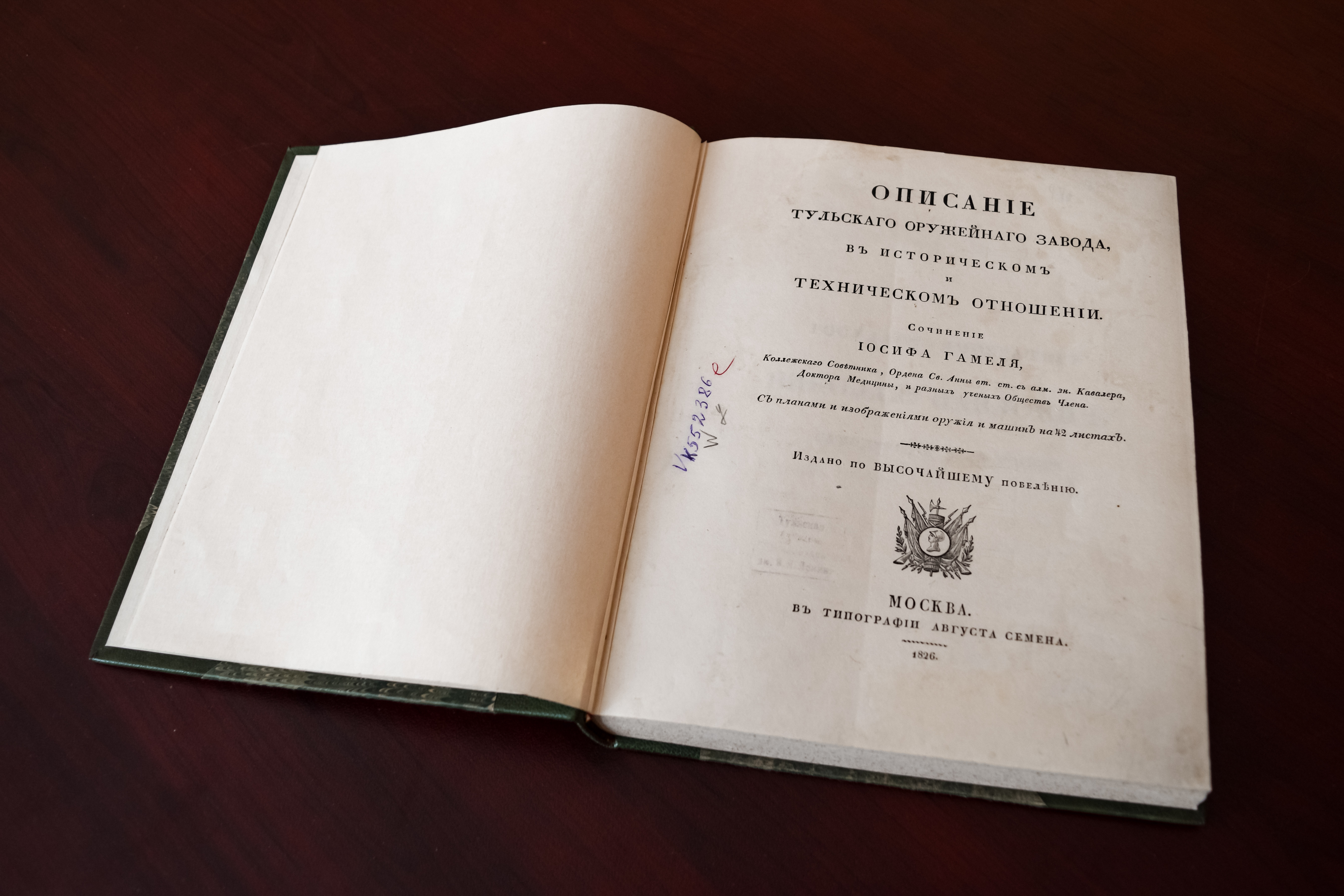 В 1826 г в московской типографии Августа Семена вышла книга академика Иосифа Христиановича Гамеля (1788-1861) «Описание Тульского оружейного завода в историческом и техническом отношении». Изданию труда предшествовало всестороннее изучение архивных документов, связанных с историей возникновения и развития оружейного производства в Тульском крае.