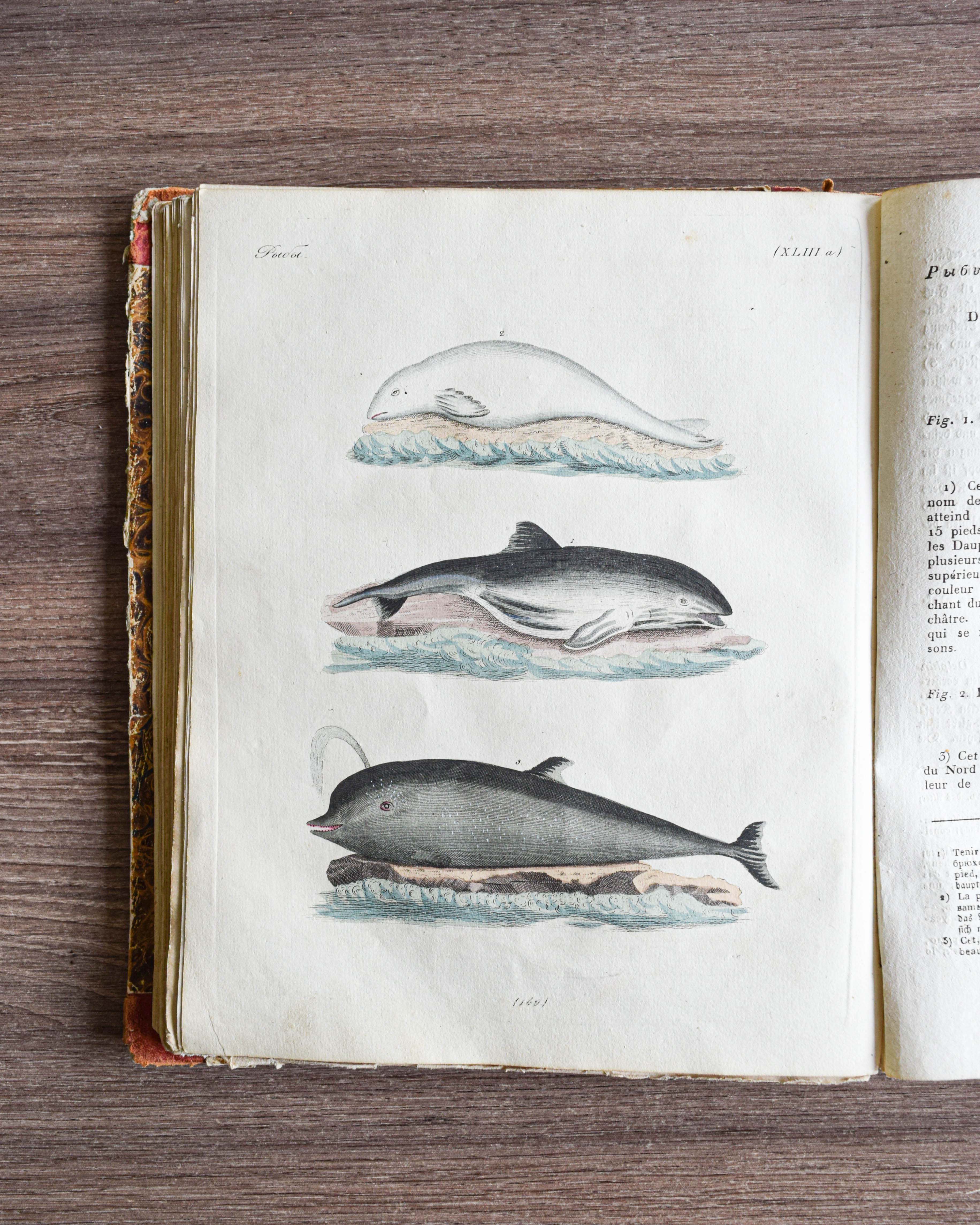 Можно предположить, что иллюстрации создавались по рассказам путешественников, наброскам очевидцев, поскольку многие животные относились не к реальным, а к «баснословным», т.е. к мифическим. В представленных выпусках нет грифонов или кентавров, но есть не менее занимательные рисунки, демонстрирующие полумифических существ, которые жили в других странах, но не являлись предметом подробного научного изучения, о которых мы уже упоминали в классификации. К таким животным можно отнести дельфинов. В части 26 представлены три их вида: толстобрюхий, беззубый, млечно-белый (белуга).